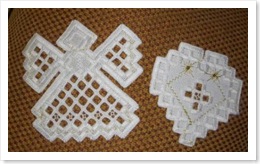 For en stund siden meldte jeg meg på PIF hos Monika og på selveste julaften fikk jeg pakken fra henne i posten. Inni gaven lå disse to flotte tingene, en engel og ett hjerte i hardangersøm. Tusen takk, de var bare så flotte og søte!!!